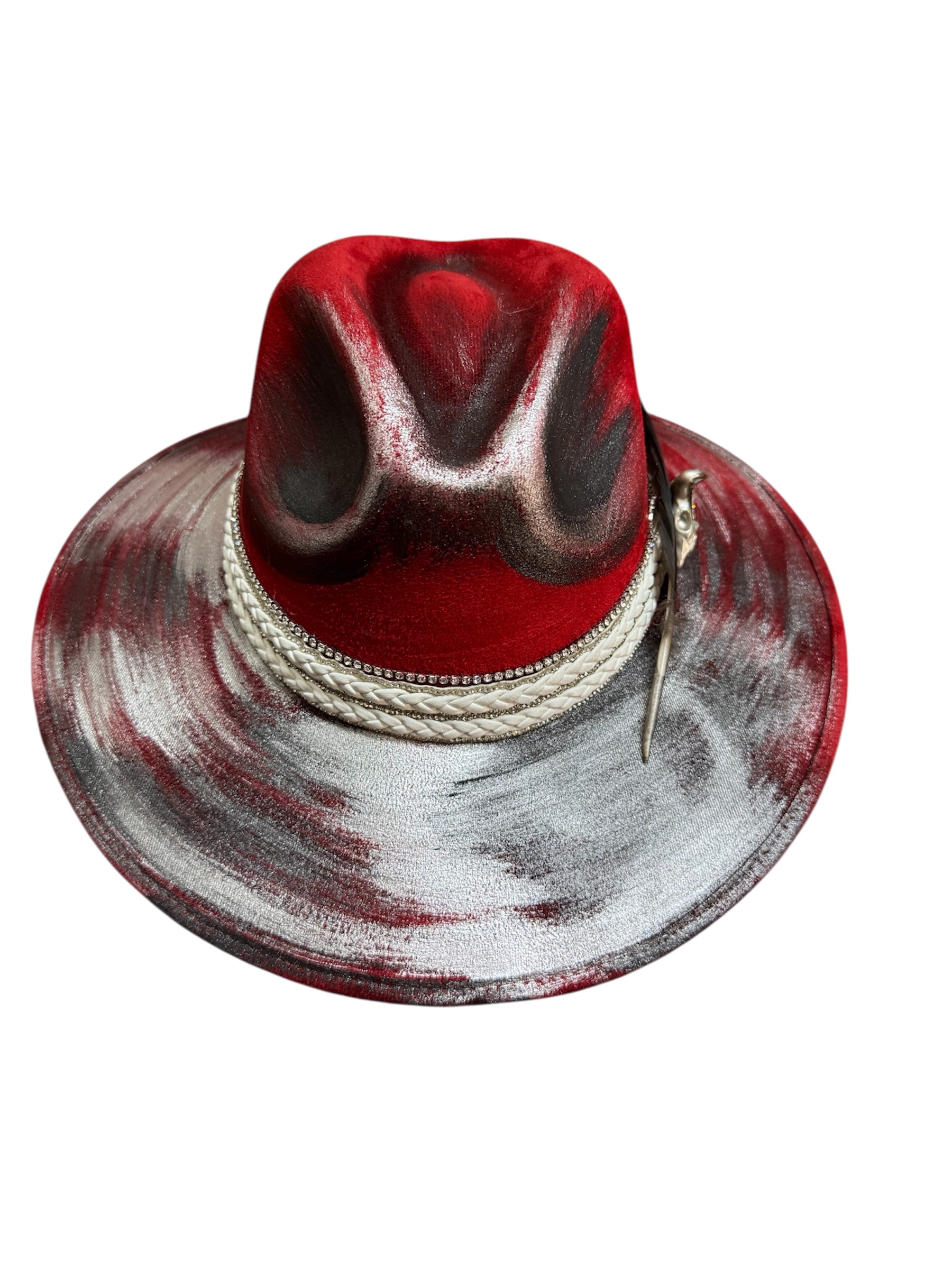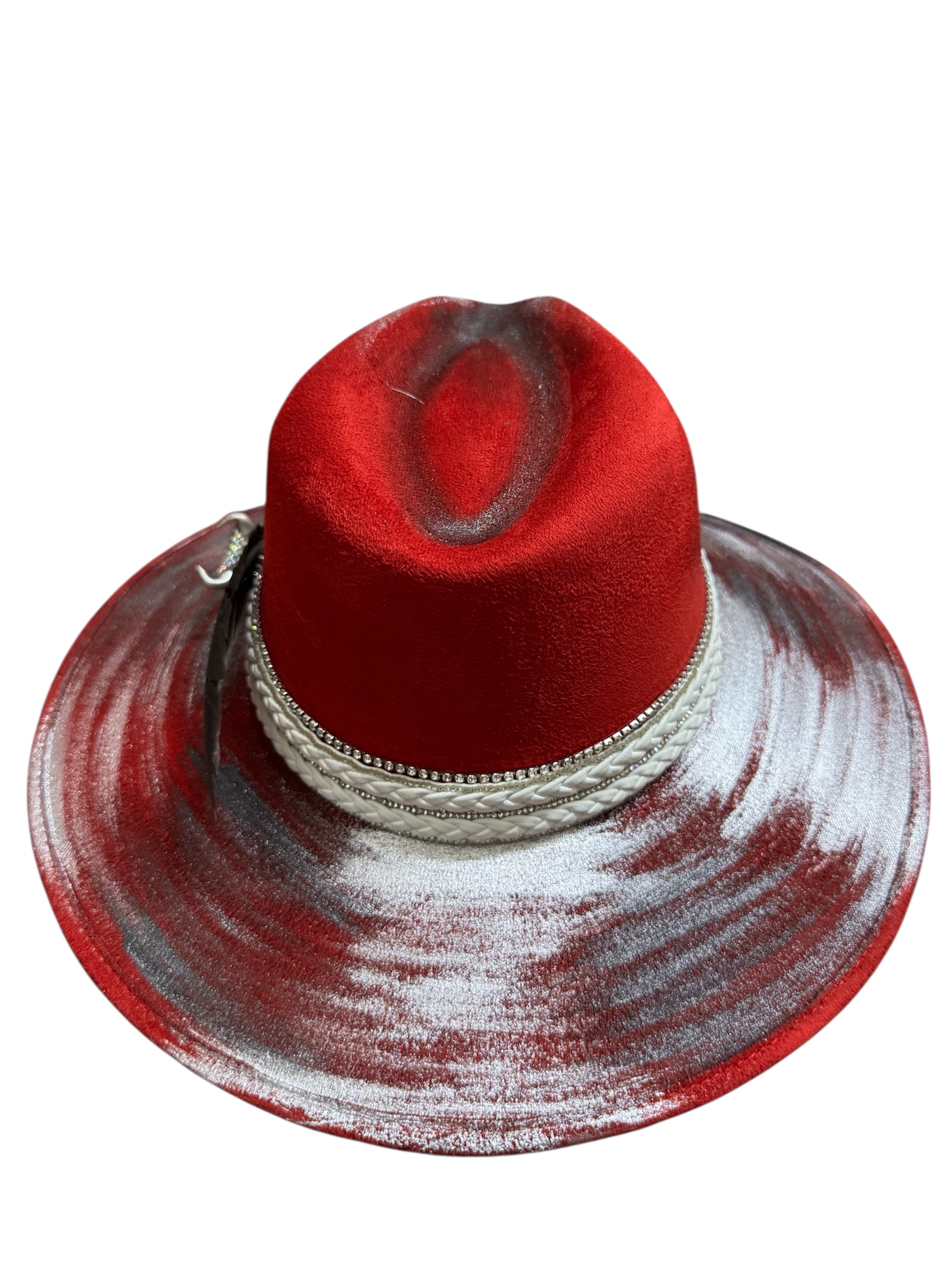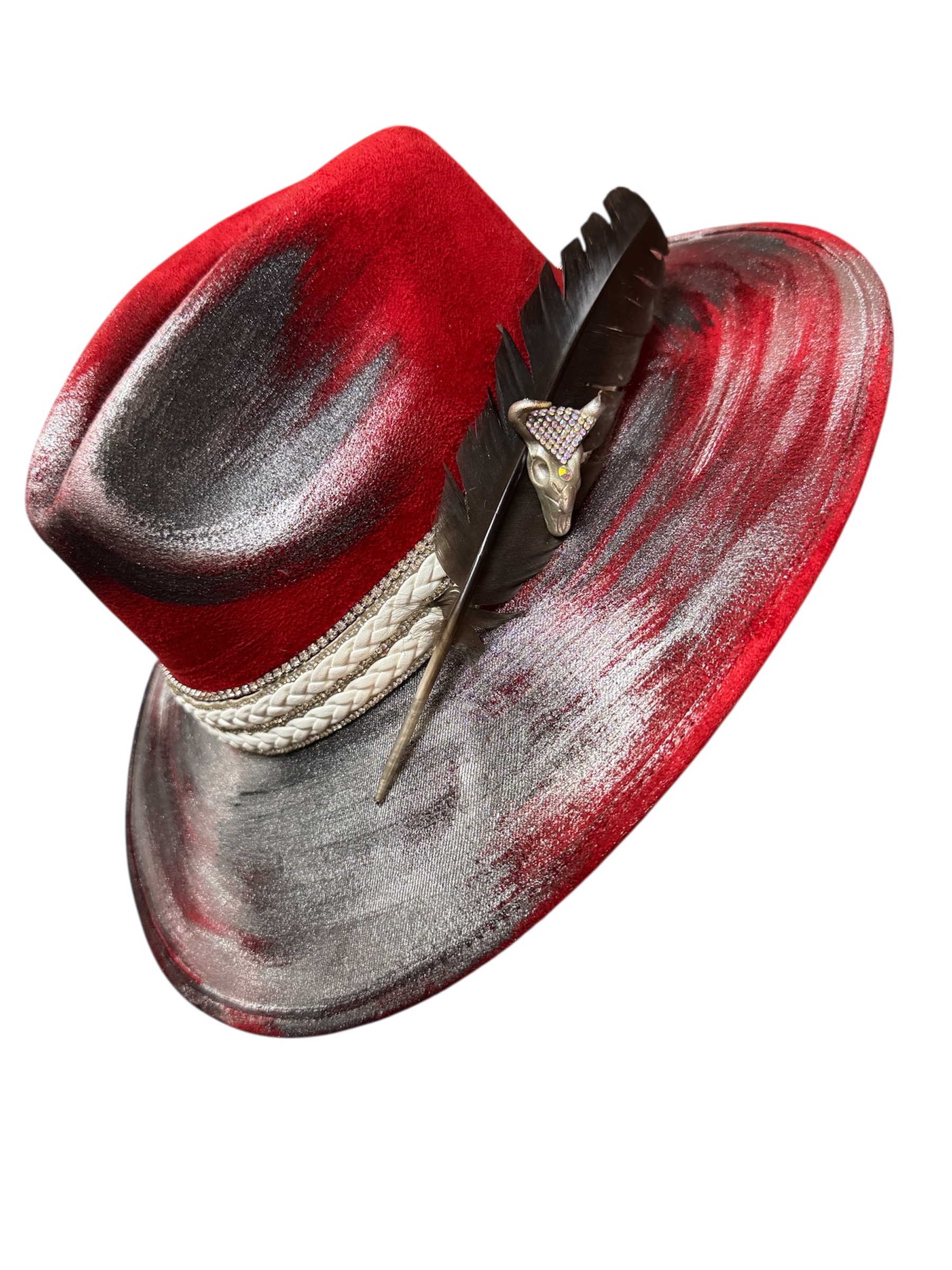Cuenta con banda trenzada, cadena metalica, y detalle de pluma.