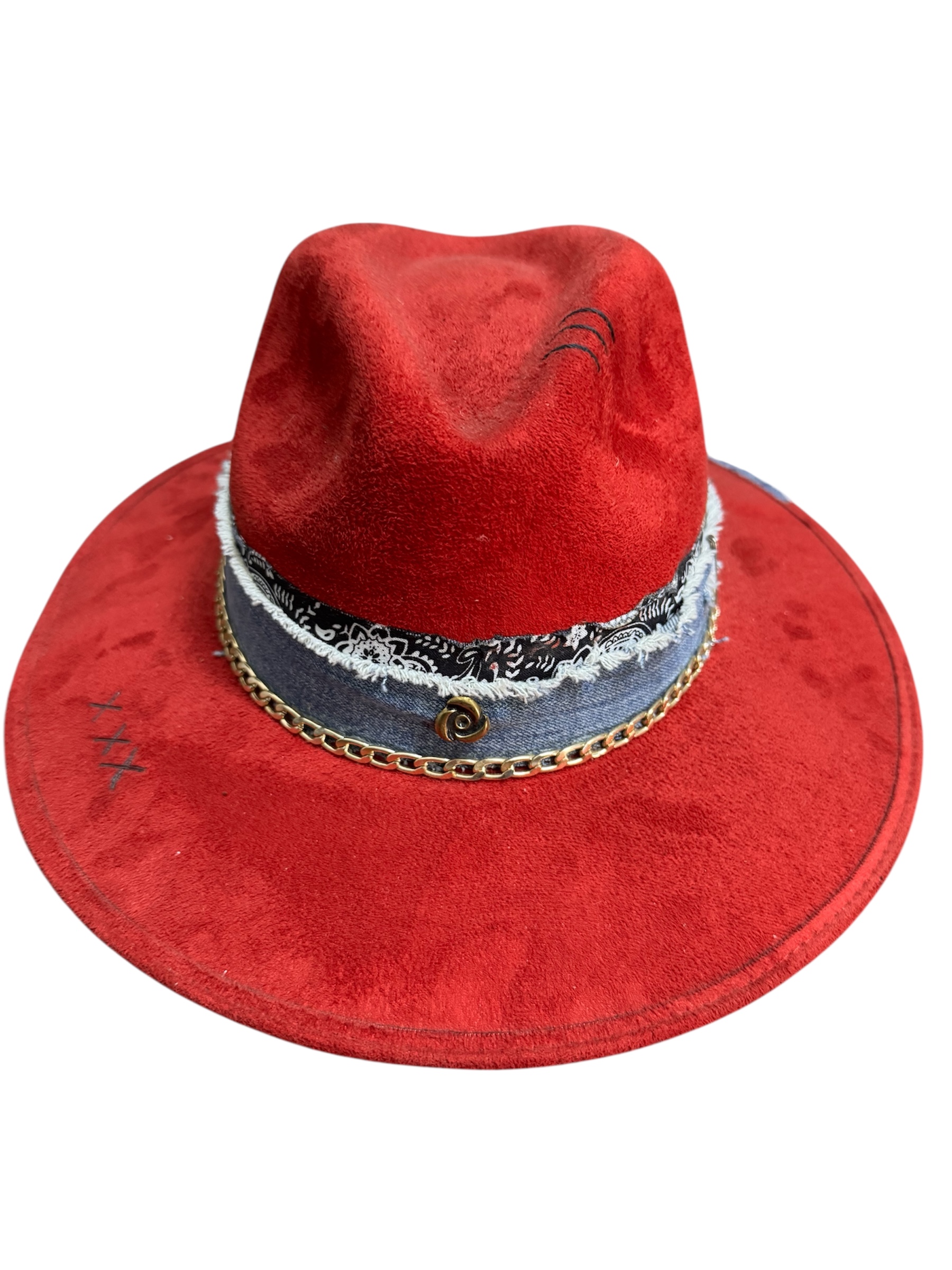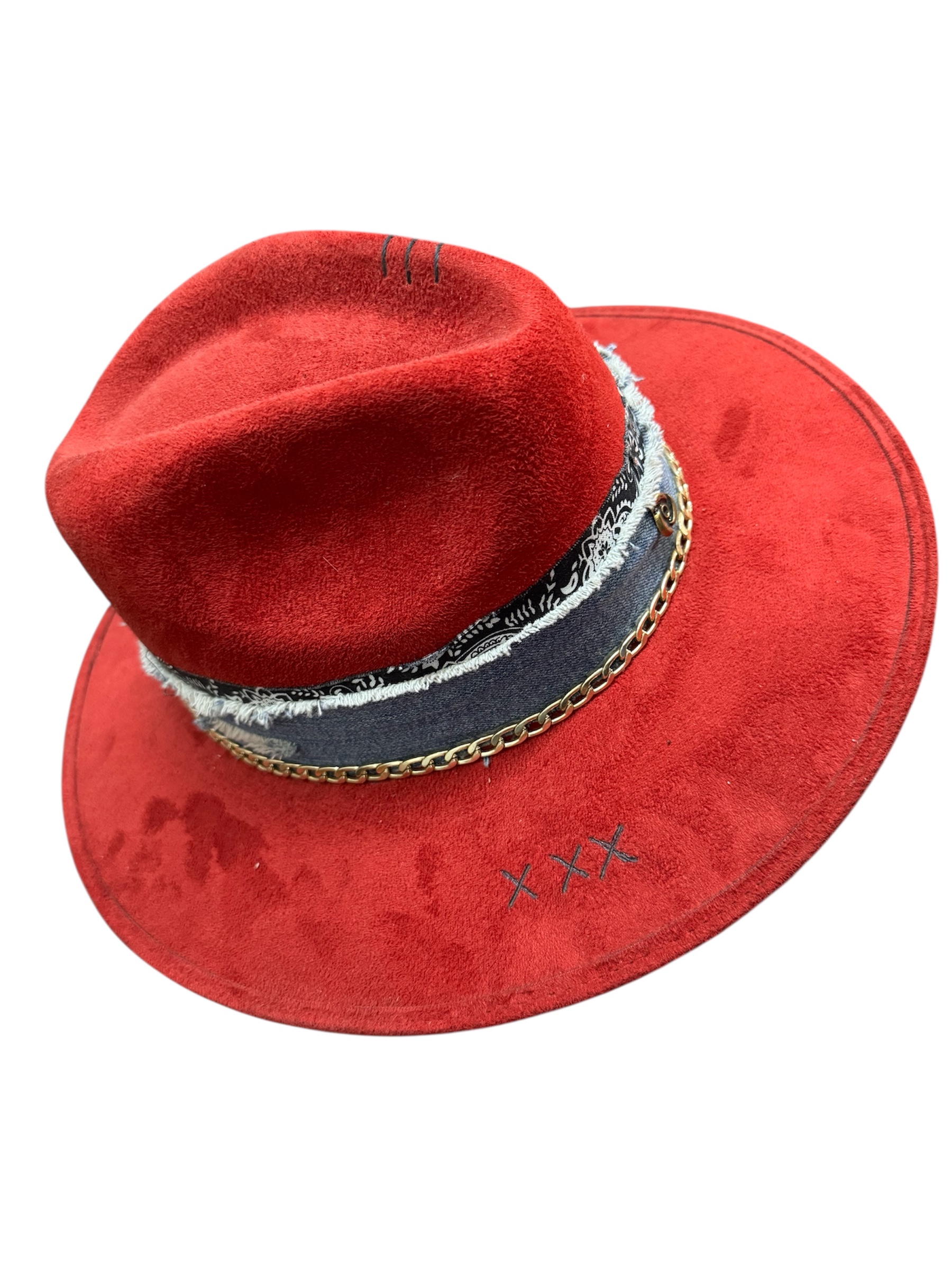 Cuenta con banda trenzada, cadena metalica, y detalle de denim.