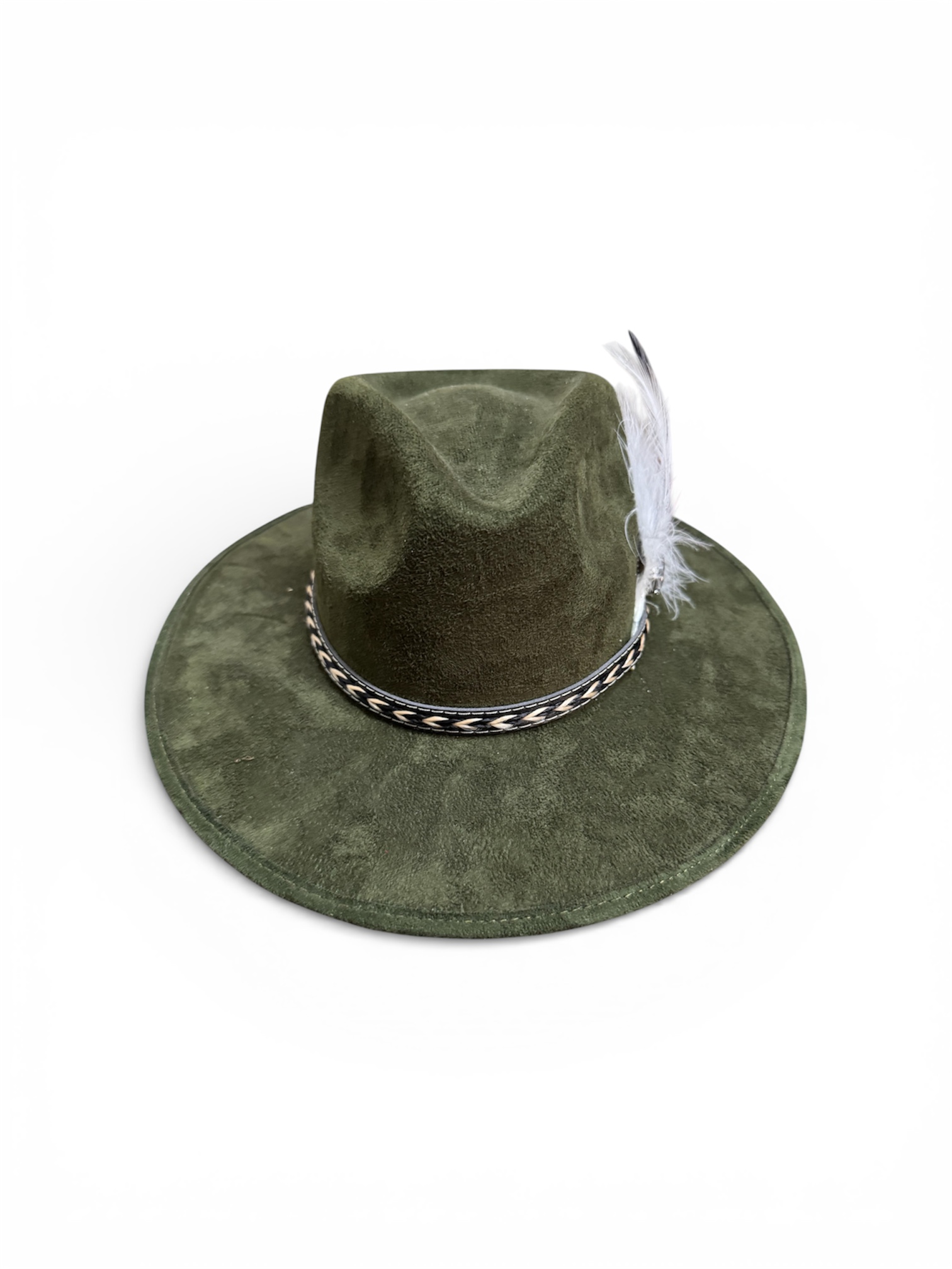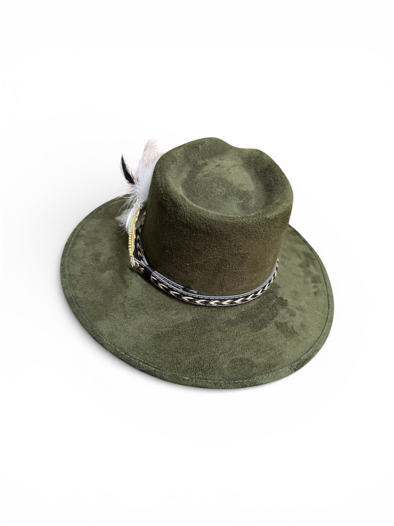 Cuenta con banda piel, y una pluma para decorar.