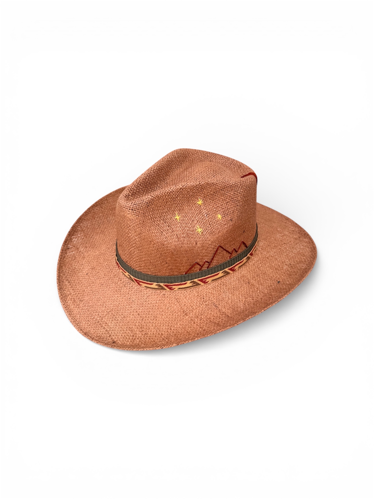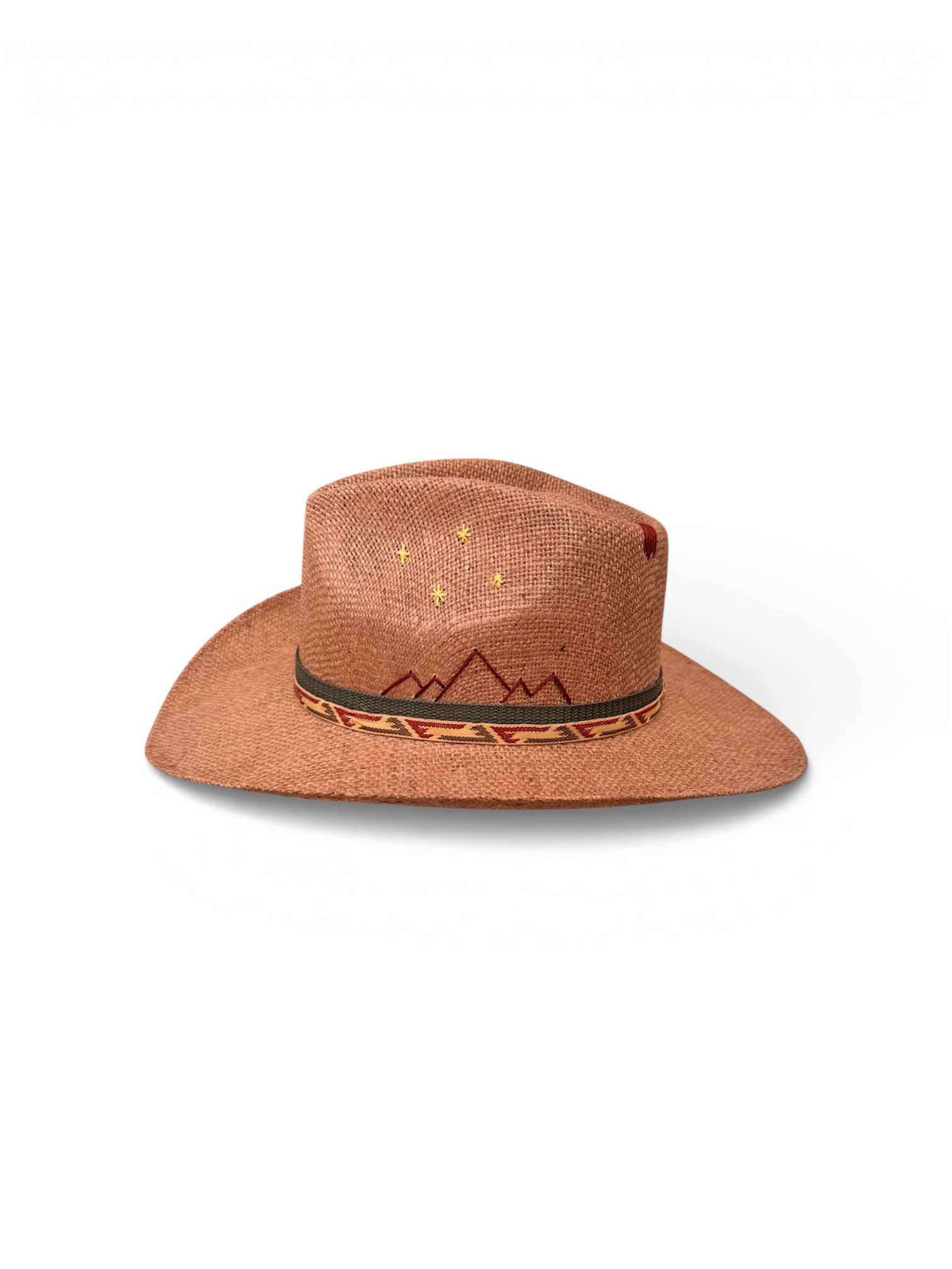 Sombrero Copa estilo Fedora, Ala estilo semi plana, Material fibra natural tejida artesanalmente.