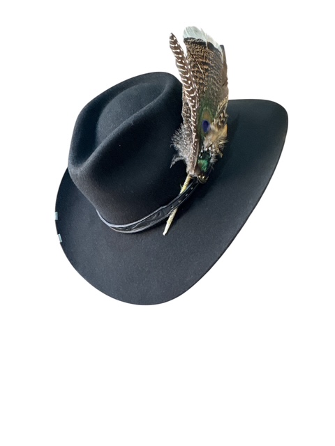 Cuero de toquilla, pluma, herrajes metálicos, banda elástica para el sudor (ajustable a una talla mayor o menor)